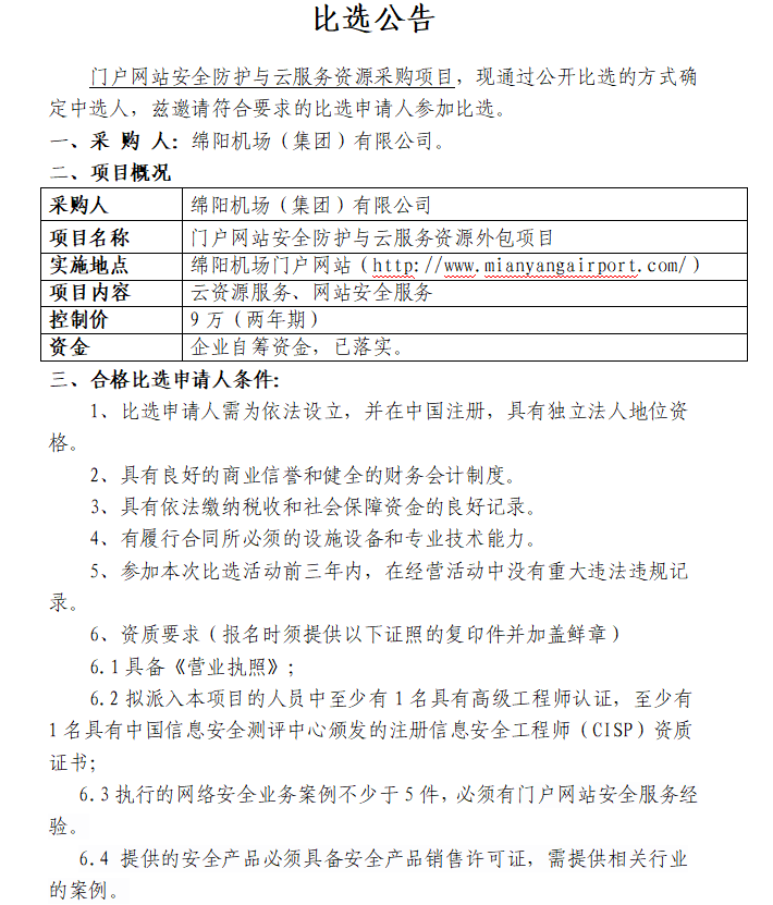 門戶網站安全防護與云服務資源項目采購(第二次)