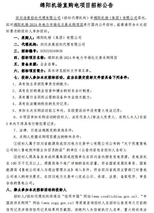 綿陽機(jī)場直購電項目招標(biāo)公告